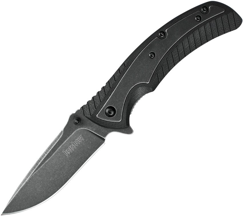 Assisted opening. 4.5″ (11.43cm) closed. 3.25″ (8.26cm) BlackWash finish 8Cr13MoV stainless blade. Black glass filled nylon handle with BlackWash finish steel onlay. Extended tang. Thumb stud. Pocket clip. Clam packed.